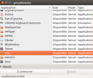 Par défaut, anyremote est installé avec des fichiers de configuration permettant de prendre le contrôle des applications suivantes :