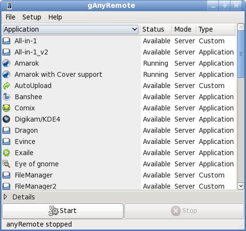 Une fois le logiciel installé, il suffit de lancer le serveur avec le fichier de configuration du logiciel qui nous intéresse : Les fichiers de configuration sont présents par défaut dans le répertoire /usr/share/anyremote/cfg-data