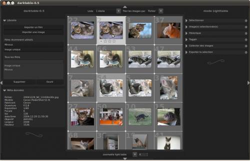 Darktable se compose de 3 vues : table lumineuse, chambre noire, capture.
