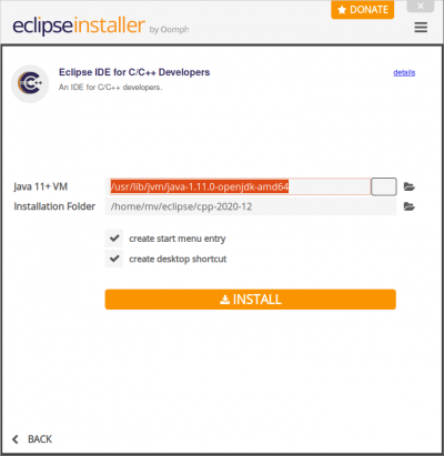 L'intérêt de cet outil étant de pouvoir installer plusieurs configurations d'éclipse (ici la configuration de base C/C++ dans le répertoire eclipse/cpp-2020-12) tout en n'utilisant qu'un seul "pool" de plugins (conservés dans le répertoire ~/.p2).