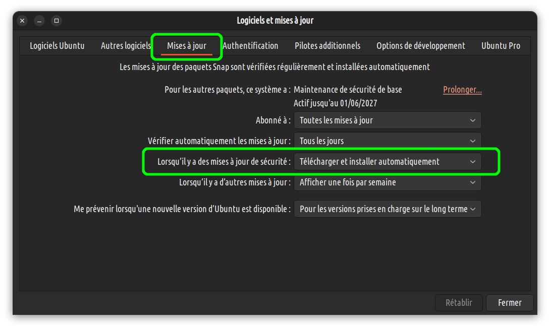 Pour éviter de recevoir une petite notification, puis de lancer les mises à jour manuellement, vous pouvez configurer les mises à jour automatiques dans Paramètres système/Logiciels et mises à jour. Cela ne fonctionne que pour les mises à jour de sécurité.