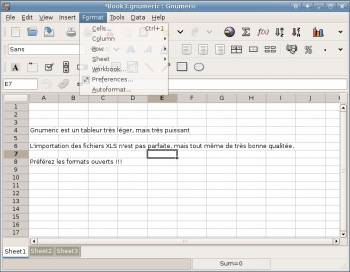gnumeric_90.jpg Gnumeric est un tableur sous licence GPL, issu du projet GNOME et développé avec Glade. Il fait partie de la suite bureautique GNOME Office, qui a été très utilisée avant l'arrivée d'OpenOffice.org. Ce tableur est léger, il conviendra mieux aux ordinateurs plus anciens qui auraient un peu de mal avec LibreOffice.