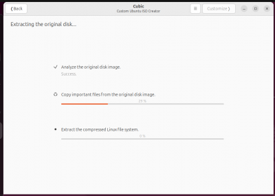 Une fois que le terminal a rendu la main, vous pouvez continuer. Cubic fait l'analyse du contenu préparé dans le mode virtuel