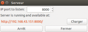 Il est très facile d'utiliser Kiwix en réseau. Dans votre poste serveur, allez dans "Outils" → "Serveur". Cliquez sur "Démarrer". Une adresse ip s'affiche comme dans l'image suivante. Entrez cette adresse dans le navigateur web du/des pcs clients qui souhaitent accéder au contenu de Kiwix.