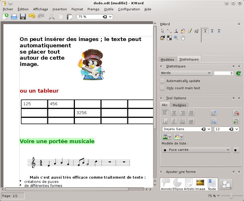 Words est une application de traitement de texte, faisant partie de la suite Calligra et développée pour KDE.