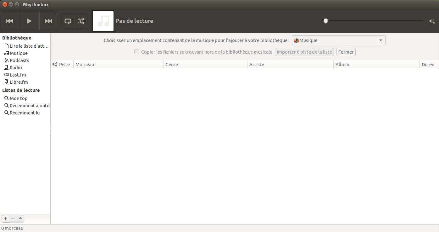 Rhythmbox est le gestionnaire de musique par défaut. Il est possible d'installer le lecteur VLC en complément.