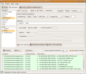 - choix du motif de remplacement (numéro, date, heure, tag MP3, info image, nom de dossier …)