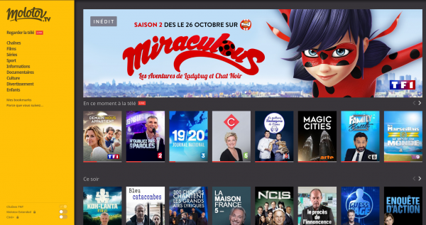 Molotov est un logiciel propriétaire qui permet de regarder la télévision via internet.