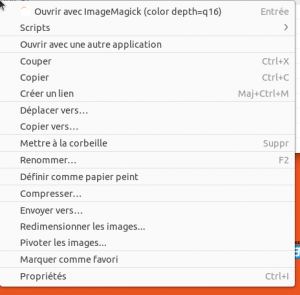 Pour ajouter certaines fonctions au menu contextuel, rendez-vous sur Nautilus, utilisation avancée et installer l'extension nécessaire, par exemple nautilus-image-converter pour avoir l'option redimensionner des images.