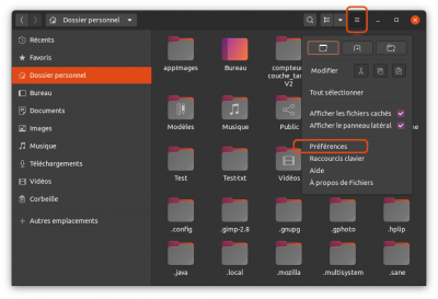 ~/. L'idée est de cacher ici les répertoires et fichiers utilisés par le système, mais propres à l'utilisateur, pour donner une meilleure visibilité aux contenus documents ou médias de l'utilisateur.