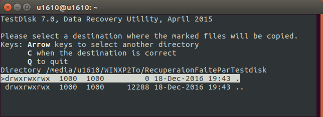 il ne reste plus qu'à sélectionner le répertoire .. et lancer la copie par la commande C