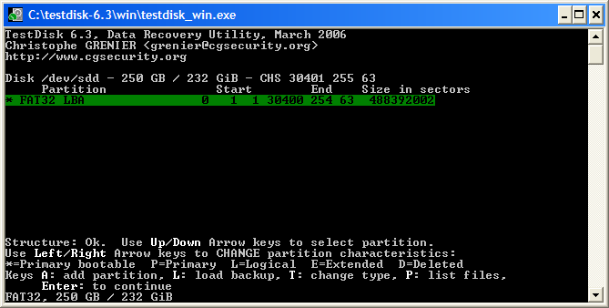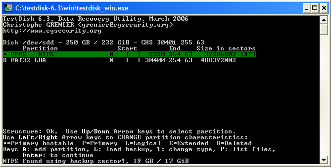 - sélectionner la partition à réparer avec [Boot], ça va afficher quelque chose comme ceci:
