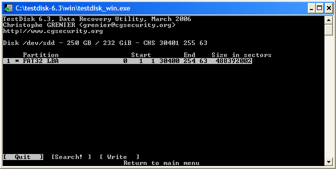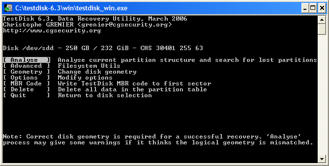 Testdisk est un outil analysant un disque dur à la recherche de partitions effacées ou endommagées. Il recherche un « index » permettant de retrouver une partition formatée à tort. Ayant retrouvé cet index, il reconstitue le système de fichiers.