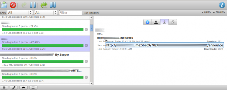 transmission-remote -l - Pour avoir les infos d'un torrent plus les peers connectés, tapez :