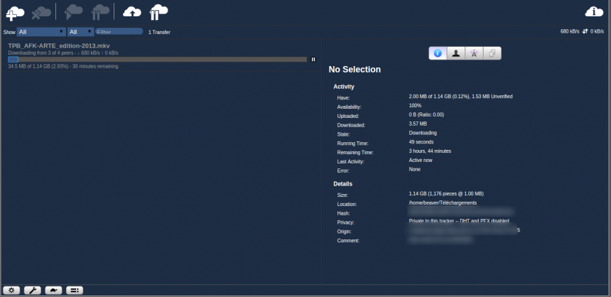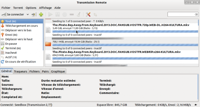 À noter que transmission-cli sauvegarde ses téléchargements dans le dossier où il a été lancé, par défaut votre Dossier personnel.