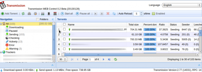 Transmission-daemon permet aussi d'avoir une interface Web pour gérer ses téléchargements lorsque transmission-gtk n'est pas installé comme sur une machine sans serveur graphique. Notez que Transmission-daemon a sa propre instance indépendante de toute autre installation de Transmission.