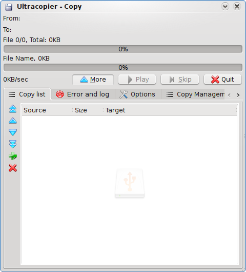 - Lancer UltraCopier (si il n'est pas dans la barre de notification / systray) en tapant en ligne de commande ultracopier,