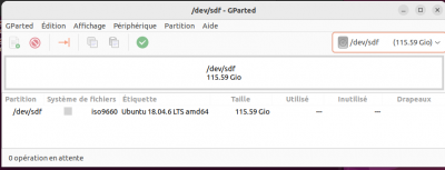 b/ Démarrer le PC sur le live-USB. La zone "non allouée" est automatiquement gravée en ext4 lors du démarrage (qui peut prendre plusieurs minutes), mais les droits sur cette 2e partition sont root:root. Donc elle est à peu près invisible et inutilisable (c'est la raison du blocage initiale de l'espace libre pour les transferts de fichiers).