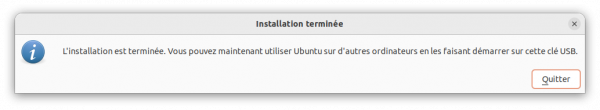 Le live-USB créé n'est PAS persistant. Vous ne pouvez PAS l'utiliser comme bureau mobile. Les fichiers que vous y créerez, les programme que vous y installerez seront en effet perdus après extinction.