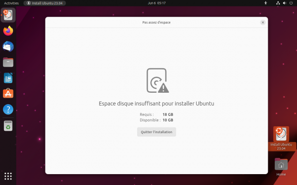 Il faut malgré tout, un minima de place disque. Il ne reste plus qu'à recommencer.