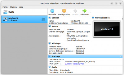 Pour pouvoir, faire tourner convenablement une machine virtuelle sans ralentissement lors de l'utilisation de celle-ci, il est recommandé d'avoir au moins 4 Go de RAM, un processeur dual-core/quad-core cadencé à 2 GHz. Il serait plus intéressant de posséder 8 Go RAM un processeur quad-core 3 GHz, dont 4 Go pour le système physique, 4 Go pour la machine virtuelle, allouer 2 cœurs à la machine physique et allouer 2 cœurs à la machine virtuelle. Vérifiez que votre CPU supporte la virtualisation, pour plus d'informations rendez-vous sur la page virtualisation.