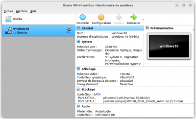 - Machine → Préférences, pour configurer une machine virtuelle ;