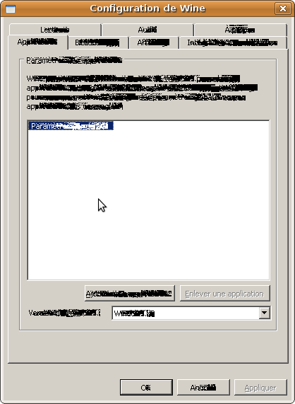 Wine ne peut changer tout son système interne de fonctionnement en fonction d'une version de Windows ou d'une autre. En revanche il peut faire croire à l'application que le système est bien de type Windows XP ou supérieur. Nous allons donc configurer Wine avec winecfg :